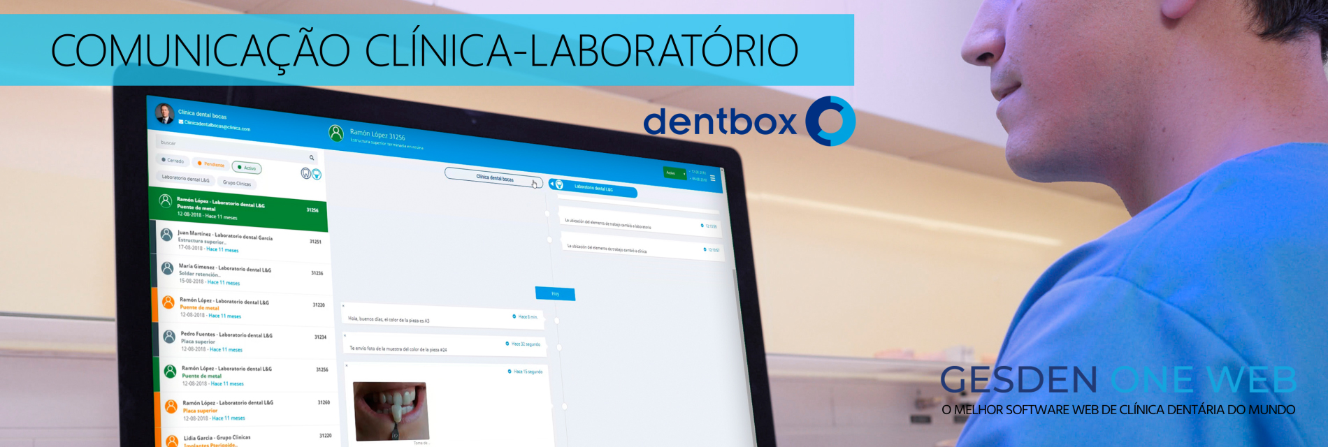 Gesden One integra uma plataforma de intercâmbio digital entre a clínica e o laboratório de prótese, que permite um rápido, seguro e eficiente sistema de envio e gestão das prescrições e dos trabalhos de prótese.